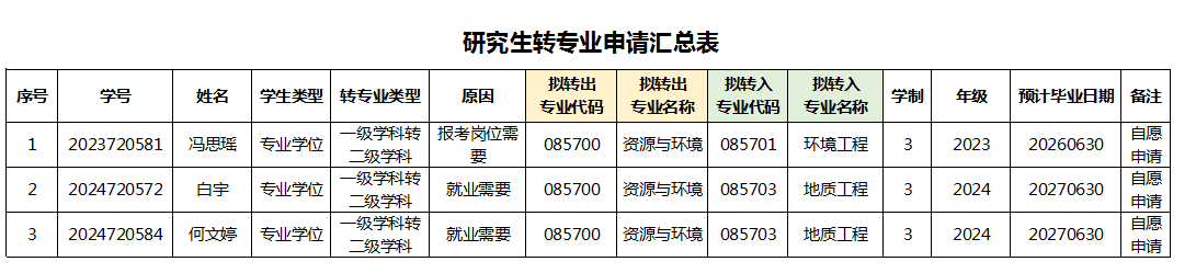 根据《bv伟德国际1946研究生学籍管理办法》(长大校发〔2020〕92号)、《关于<bv伟德国际1946研究生学籍管理办法>转专业有关条款的补充解释》(研院发〔2024〕5 号)等文件中关于转专业的相关规定,按照工作进程,经员工申请,导师同意,学院审核,现将2024-2025学年第二学期转专业审核结果公示如下,公示时间:2025年2月24日至2025年2月28日。如有异议,请与教学办曾老师联系027-69111182。
