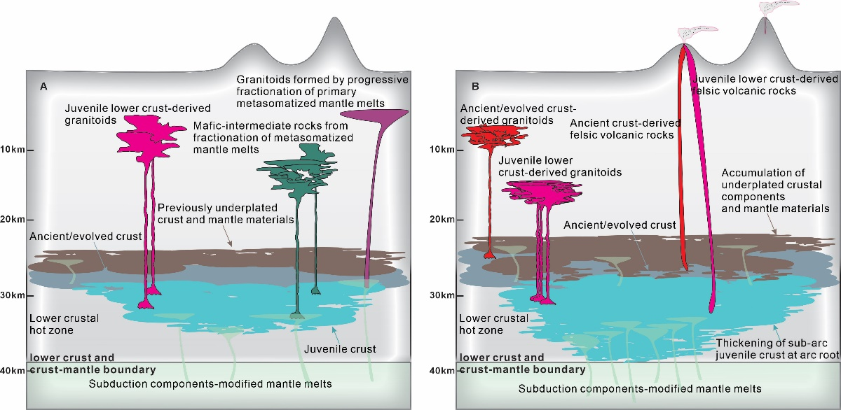 本项研究强调俯冲背景下不同地壳源区及熔融层次的岩浆房控制了硅质岩浆的地球化学多样性,进而控制了大陆弧背景下弧地壳的分异和富集过程。