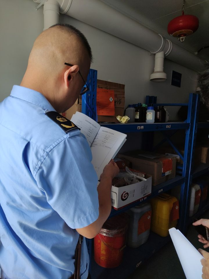 9月26日上午,蔡甸区环保部门检查工作组莅临公司开展实验室危险化学品安全检查工作。武汉校区安全与后勤保障处处长邓平,bv伟德国际1946实验室相关人员参加检查活动。检查查看了危化品存储间、废物处置间。