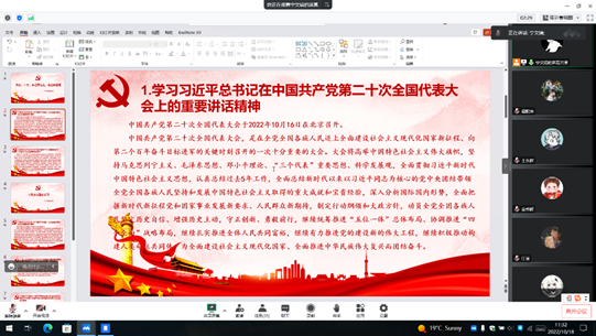 中国共产党第二十次全国代表大会在2022年10月16日隆重开幕,为了加强员工爱党爱国教育,促进员工成长成才,凝心聚力学思想,奋斗实干铸华章。加强研究生对党的二十大精神的学习,bv伟德国际1946组织各班召开了以“学习二十大,争做有为青年”为主题的政治理论学习班会。