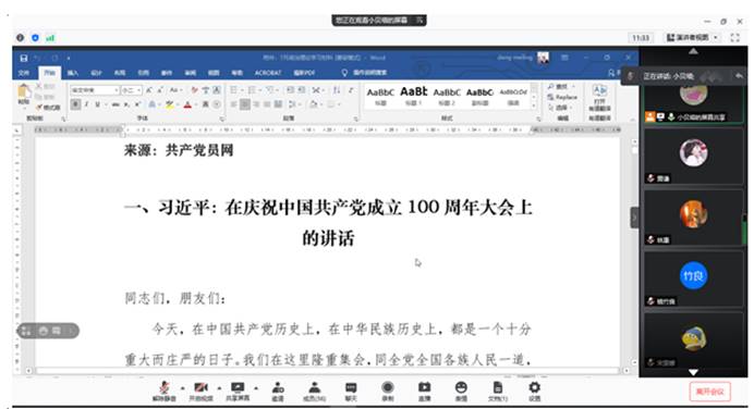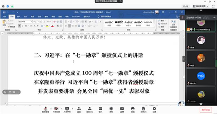 (通讯员 李慧/文 王瑞林/图) 为庆祝中国共产党成立一百周年,提升公司研究生政治理论素养,坚持推动以习近平新时代中国特色社会主义思想武装头脑,进一步增强“四个意识”,坚定“四个自信”,做到“两个维护”,2021年7月6日,公司指导督促研究生各班举办政治理论学习主题班会。