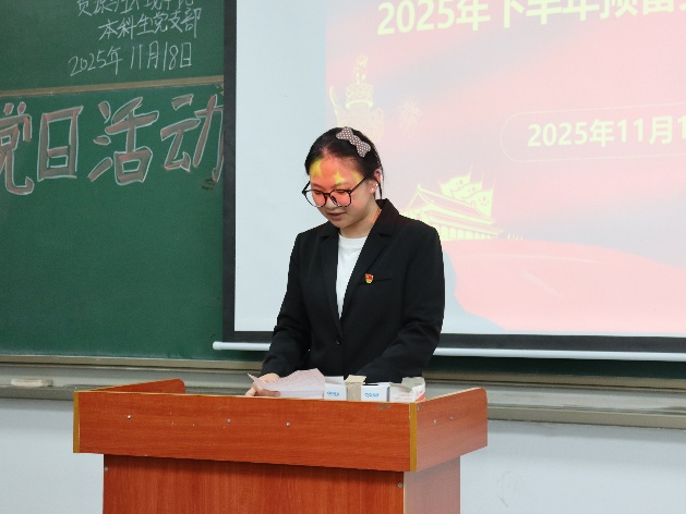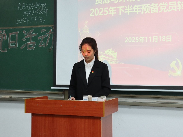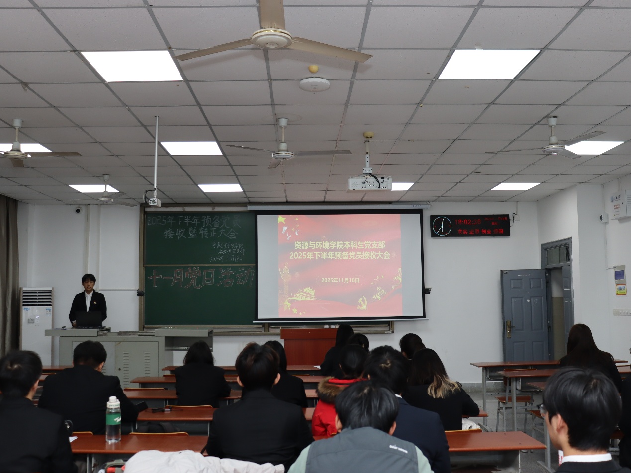 (通讯员孙文静) 2025年11月18日下午6点, 学院本科生党支部于武教A106举行2025年下半年预备党员接收暨转正大会,学工办主任李春花老师、员工党员、发展对象参会。 大会第一项,接收预备党员。3名发展对象依次上台向党组织汇报入党动机、成长收获、未来发展及需要向党组织说明的问题。发展对象入党介绍人对发展对象的情况加以说明,并对其能否入党表明意见。经支部讨论和无记名投票表决,同意接收李燕丽等3名发展对象为中共预备党员。 大会第二项,预备党员转正。申请转正的4位预备党员依次上台,向党组织汇报了预备考察期学习、工作、针对自身不足改进情况,深刻阐述了对党的认识、入党动机以及个人成长与进步。经支部大会讨论和无记名投票表决,同意答淑涵等4名同志按期转为中共正式党员。 此次支部大会的召开,为党组织注入了新鲜血液,壮大了党员队伍。李春花老师在总结讲话中强调,全体党员要时刻牢记入党初心与动机,将不足与批评化为动力,不断加强理论学习,在学习、工作和生活中发挥党员的先锋模范作用,为学院的发展和党的事业贡献自己的力量。 审核(李春花)