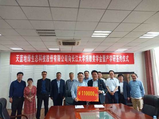 5月13日,湖北天蓝地绿生态科技股份有限公司向bv伟德国际1946捐赠11万元奖学金暨产学研合作签约仪式在在武汉校区举行。该公司董事长高文兵先生及部分高管、武汉校区副董事长赵林、公司领导班子及部分教师代表出席签约仪式。