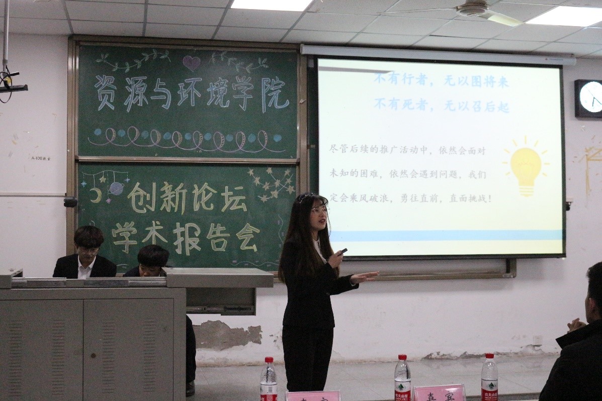 大会开始,各组代表分别就水生态修复、物联网控制、复合蓝藻治理、土壤鉴定、富硒产品推广及实验器械创新等方面,对在场同学们进行了详细的学术报告,并与三位专业老师进行了多回合的答辩。