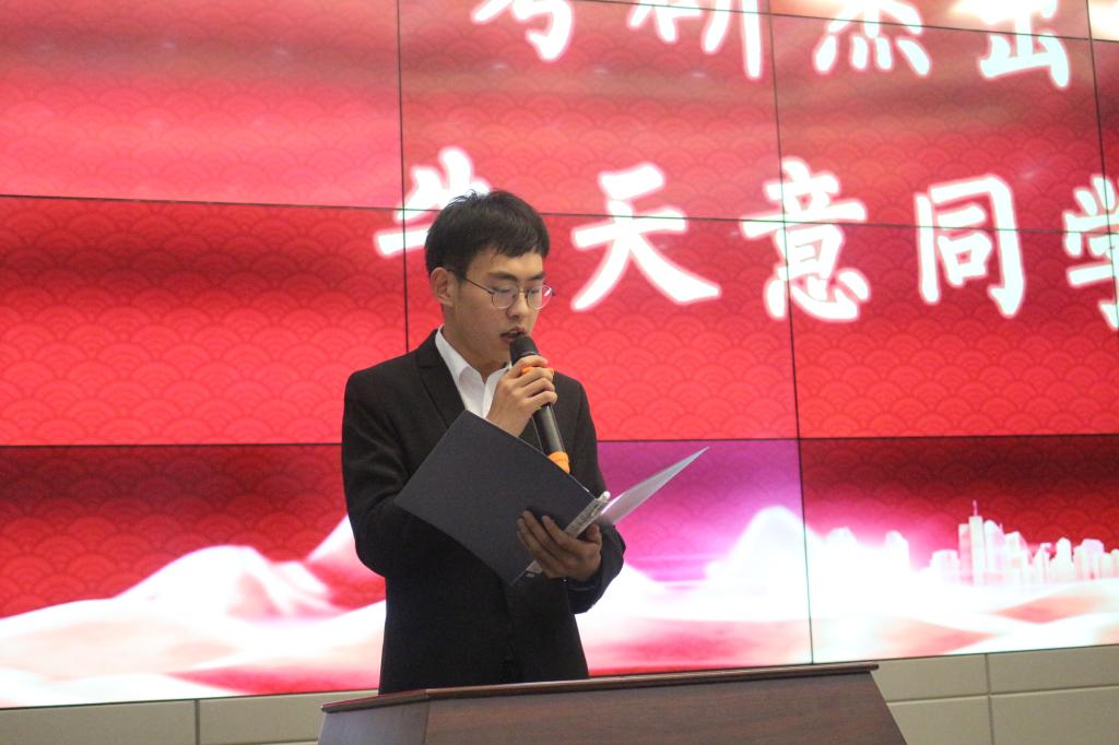 大会第四项,考研杰出代表——牛天意同学发言。牛天意向同学们述说了他的故事,从进入bv伟德国际1946的那一刻开始,他就立志为提升自己而战,不论是日常学习还是考研生活,他都能够全身心地投入,不被外物所干扰,坚定自己的信念。他呼吁同学们能够不忘初心,为自己的梦想而奋斗。