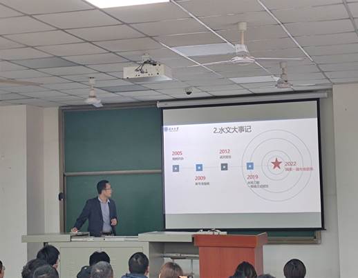 大会伊始,由各专业老师进行专业介绍。来自地球化学系谢小敏老师向各位同学讲述了自己与地球化学结缘的故事,并向大家传达了自己的心得体会:如果你没法选择你的热爱,就热爱你的选择。环境生态工程专业的罗杰老师在开始介绍前表示“我不是来打广告的,我希望大家能选择自己真正喜欢的专业。”接着用他风趣幽默的语言将专业名称拆分开,从“环境”“生态”“工程”“生态环境”“环境工程”“生态工程”“环境生态工程”这7个方面向大家详细解读了环境生态工程专业的研究意义。最后由潘红忠老师代表水文与水资源工程专业向大家展示了水文的魅力。从优秀员工到水文大事,从2005年荆州开办到2002年国家一流专业获批,bv伟德国际1946在短短的17年内将水文与水资源工程打造成了“两好两高”(考研好,就业好;考研质量高,就业质量高)的优质专业。在三位老师全面精准的介绍下,同学们都对学院开办的专业有了更深的了解,心里也对自己的选择有了初步的想法。