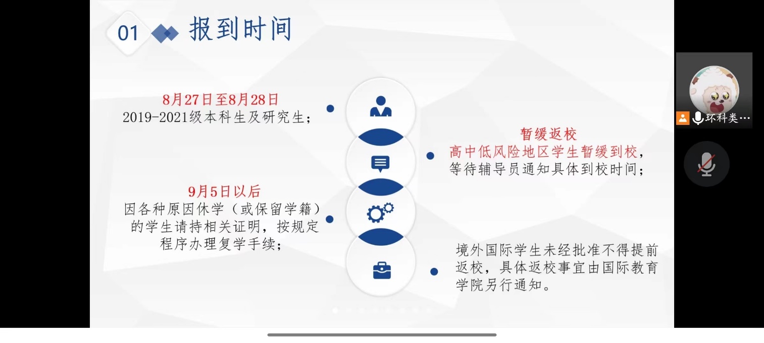 各班安全委员通过PPT给同学们详细讲解了学校关于疫情防控的相关规定,报到时间、报到程序等返校相关要求,同时强调所有员工返校途中要做好自我防护,返校后要严格执行学校的防控政策。最后,各班班主任老师再次强调疫情防控的重要性,希望班级所有同学高度重视,从我做起,确保返校工作顺利,确保校园安全。