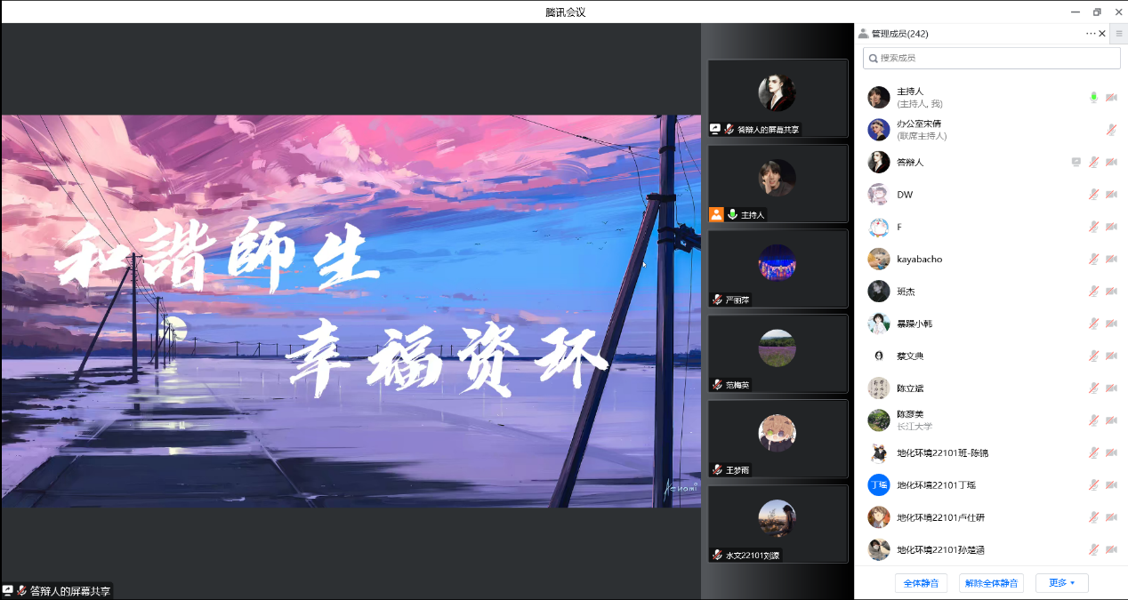 本次“和谐师生,幸福资环”活动虽然以线上答辩形式展开,但学员们的精彩表现仍旧点燃了观众们的激情,向各位大一新生们做出了榜样,同时我们也期待在未来的日子里,会闪耀出更加明亮的资环之星,诞生更加和谐的幸福班级,共同创造我们bv伟德国际1946更美好的明天!
