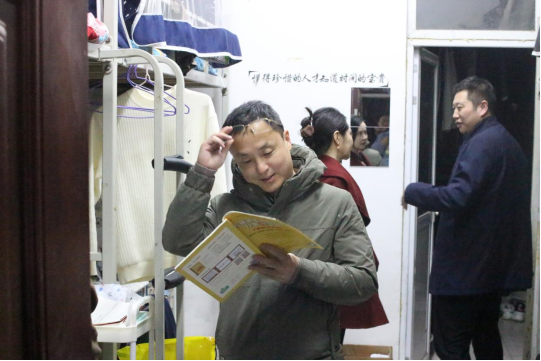 宿舍是同学们重要的一方学习阵地。在查寝过程中,老师们亲切地与员工交谈,心系同学们的学习和生活情况。华林八栋五楼的活动室被暖心地改造为考研自习室,给正在备战考研的员工提供了安静方便舒适的学习场所。这一举措温暖了正在为考研奋斗、不懈求索的员工的心田。