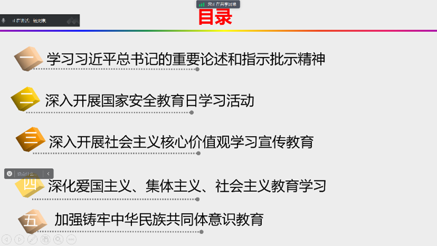在深入开展国家安全教育日学习活动中,各班同学通过观看视频、分享案例等形式,增强了国家安全意识,深刻认识到维护国家安全的重要性。大家纷纷表示,要自觉践行总体国家安全观,积极投身国家安全建设,为维护国家安全贡献自己的力量。