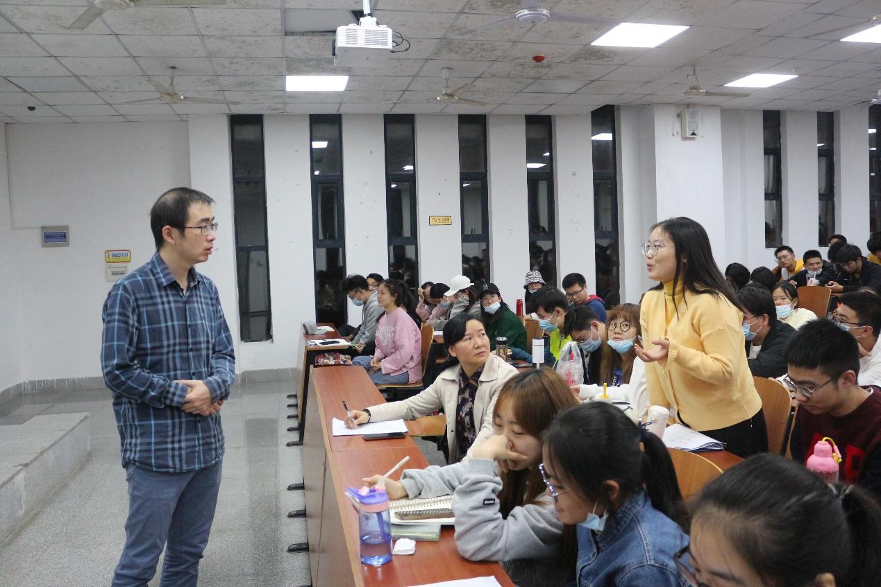 培训最后,由范梅英书记进行总结陈词。她首先向罗老师的精心准备表示了感谢并肯定了同学们的热情。她呼吁同学们以后要积极参加科研项目,抓住机遇,主动学习,培养思维能力,提升团队精神。她再次邀请罗杰老师上台,并引导同学们积极向老师提问。在同学们饱满的热情下,本此讲座圆满结束。