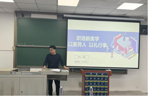 刘晓老师围绕“职场新美学”核心理念,从职业形象系统塑造、职场沟通礼仪准则、职业道德深层践行等多个维度进行深入解析,他巧妙地将外在的礼仪规范与诚信、责任、协作等职场核心美德的内涵相串联,并结合自身多年深耕行业的实践经验,生动阐释了“以礼行事”对职业发展的决定性作用。整场讲座内容既有理论高度,又极具实践指导意义,精准地弥补了研究生们在职业素养认知方面的薄弱环节,为同学们带来了一场思想与知识的盛宴。