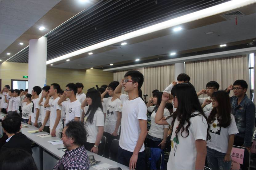 副董事长郭海敏致辞,对国家环境保护部生态司处长、中法武汉生态示范城管委会副主任王捷的光临表示欢迎。紧接着,bv伟德国际1946常青生态志愿者协会举行了简单的启动仪式。蔡甸区湖泊管理办公室喻志勇主任对蔡甸区湖泊整体规划做了简单陈述,倡议师生们利用媒介宣传“水环境保护”,加入志愿队伍,促进开展针对“水污染”的调查、治理与研究活动。常青生态志愿者代表梁宇涵上台表达了自己对环境保护的决心与信念。王捷处长为常青志愿者代表授旗。协会全体志愿者进行了宣誓。