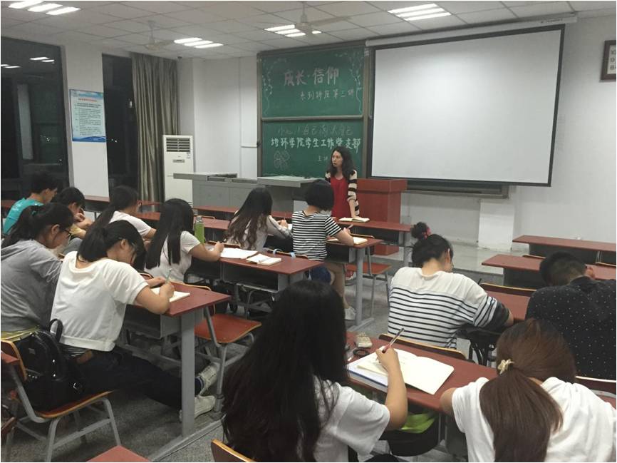 (通讯员张权/文,汤英豪/摄)5月6日晚7点,在B教211教室开展了“成长·信仰”系列讲座第三讲,主讲人为地环学院员工工作办公室主任刘娥老师。党支部全体成员和部分积极分子共20人参加了此次讲座。