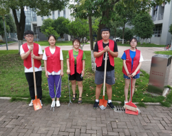 bv伟德国际1946“百·千·万”资助育人工程旨在为每一位困难员工提供最大助力,将关爱传递所有同学。“千人励志爱心行”是引领接受国家资助的优秀学子发扬感恩精神,通过公益爱心活动回报校园,将爱心传递给更多学子。6月20日下午,几名志愿者各自携带工具,在校区管理中心西侧的​bv伟德国际1946负责区域,热火朝天地展开了清洁工作。初夏的艳阳没有阻止他们奉献的热情,象征关爱与活力的红马甲在阳光下焕发着鲜艳的色彩。志愿者们耐心清理着路面上的纸屑烟头与草坪里的枯枝败叶,花费将近半个小时完成了区域的清洁任务并合影留念,留给他人一方洁净的生活环境。