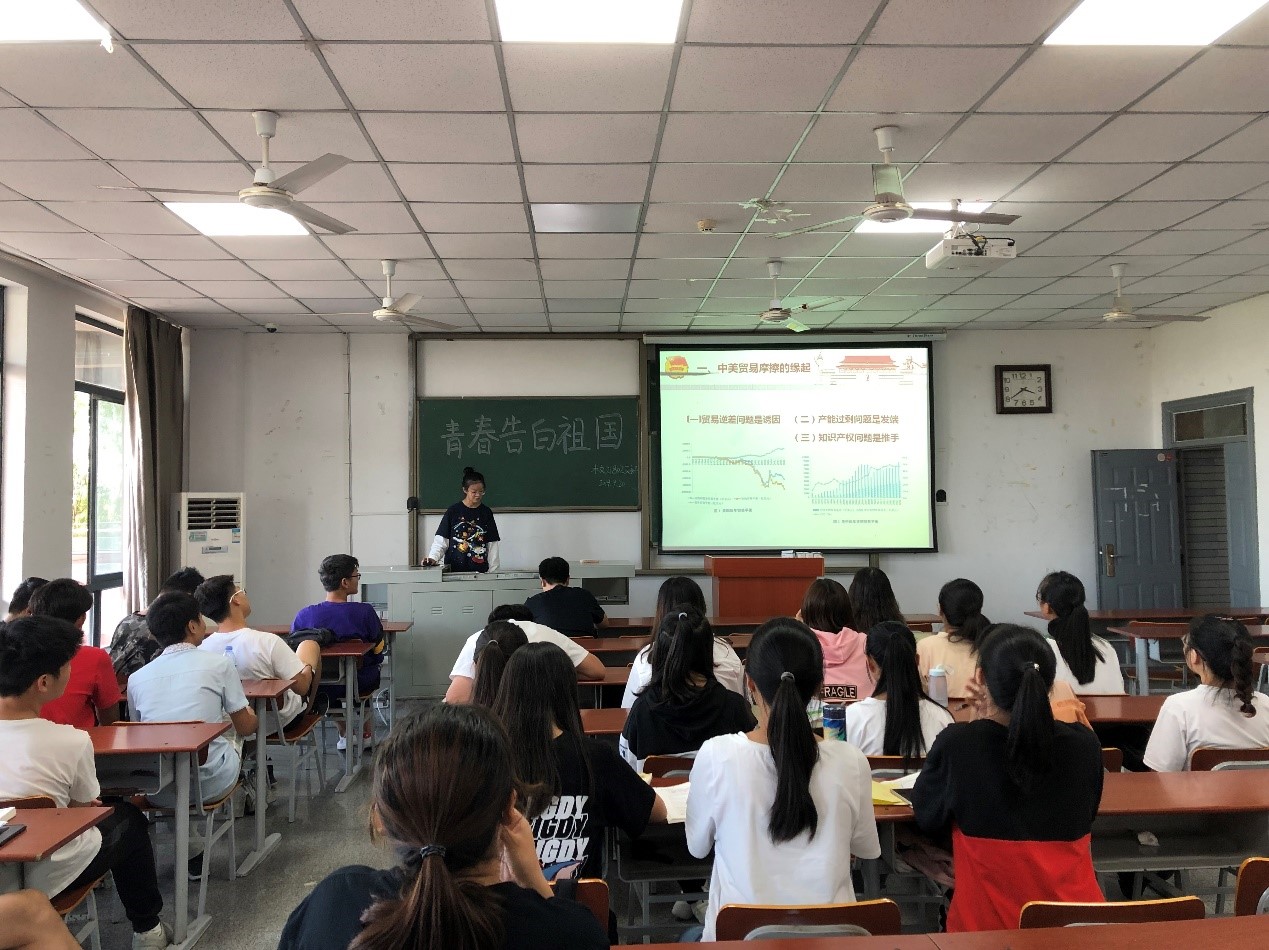 青春告白祖国主题班会由团支书以短视频的方式带大家学习《中美贸易摩擦的缘起、影响和未来走向》、《关于当前香港局势,这三点意见都说清楚了》、《不忘初心 牢记使命 扎实推进双一流建设——董事长冯征在2019年暑期工作研讨会上的讲话》。让同学们认识到立足自身与建设祖国的有着密不可分的联系,作为老员工应从基层做起,认真负责,吃苦耐劳,敢于挑战自我,提高自身素质,增长建国之才。爱国就是要以报国之志聚精会神搞学习,一心一意谋发展。