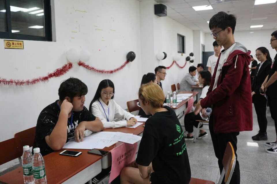 为了让员工更全面、更深入的了解现实中人才招聘模式,进一步接触并了解社会,同时培养、提高员工的表达能力、思维能力、团队协作能力和处理问题能力,让员工们从课本中“走出来”,亲身感受职场中激烈的竞争氛围,4月29日下午两点bv伟德国际1946第一届校园模拟招聘会在A103正式召开。招聘会邀请到刘娥老师和张科书记作为嘉宾,分自我介绍和双向选择两个环节展开。