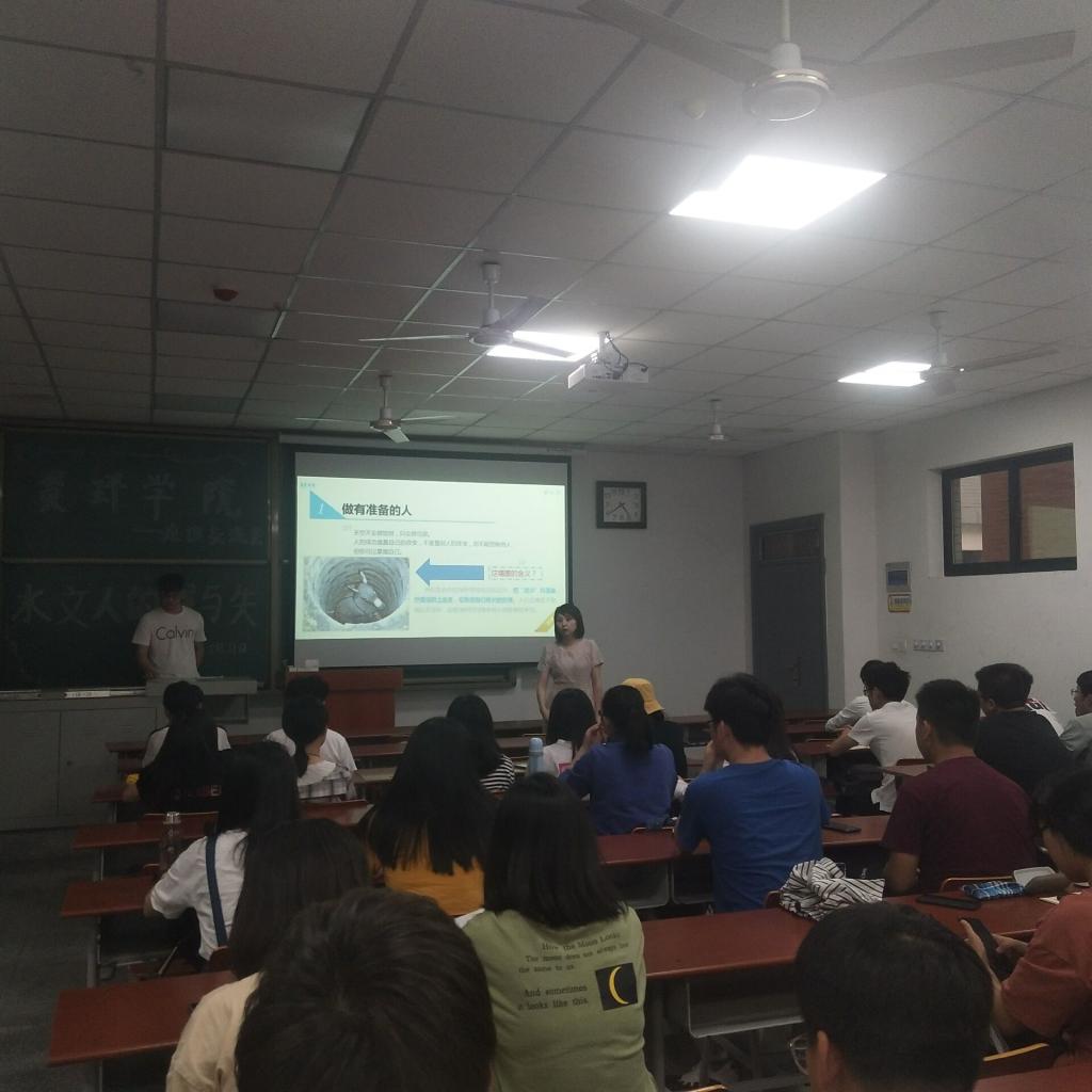 交流会期间,现已入职广东水文局的张晓盼学长根据就业环境进行分析,针对公司招考要求、性格测试、面试等方面结合自己的经验进行了介绍,结合自己的就业经历、考试准备、面试技巧等方面进行了经验分享,在他看来,工作中一定要结合自己的长处,给自己找到一个合理的角色进行定位。把需要做的事认真做了,在以后的工作会发挥重要的作用。