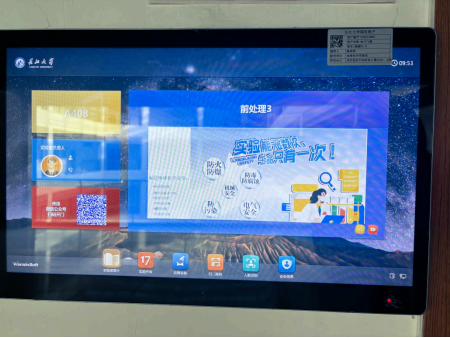 公司对于科研实验室实行预约管理,出入实验室需要刷卡进入,安全月期间在门牌上上传实验室安全相关的图片,充分利用电子门牌进行宣传,师生路过、出入实验室都能看见宣传图片,打造独具特色的学院安全教育模式,让实验室安全在师生中入脑、入耳、入心。