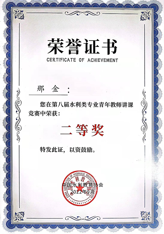 第八届全国水利类专业青年教师讲课竞赛(水文与水资源专业组)在江苏南京举办,bv伟德国际1946bv伟德国际1946水文与环境系教师那金获得二等奖。
