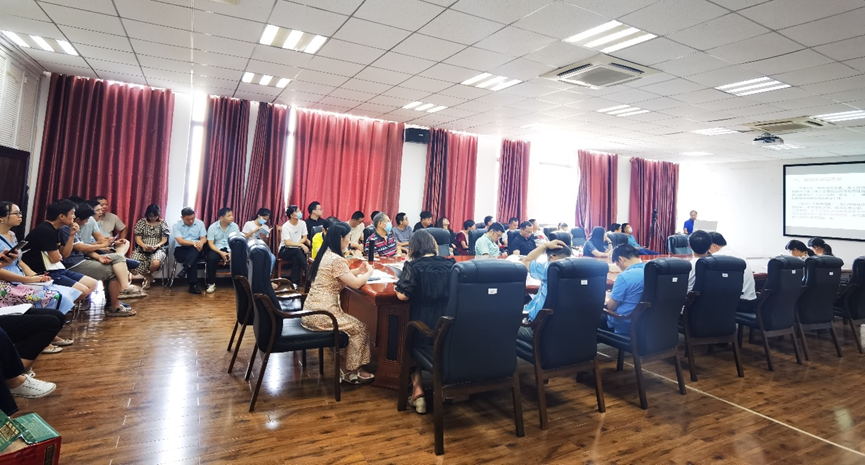 报告首先从调研不同高校员工规模、团队队伍、团队建设、人才培养、科学研究5个方面,分析学校发展的优势与不足。其次指出重人才,建设高素质团队队伍;重内涵,建设高水平学科体系;重质量,建设人才培养体系;重平台,提升科技创新能力4个方面建设高水平大学重要举措,并结合本学院实际指明下阶段重点发展方向。再次,对标年初制定的目标,总结了上半年在全员师生共同努力下取得的硕果,肯定了努力奋斗所取得的成绩,同时针对学校下达给学院的各项发展指标,找差距寻不足,明确下半年的目标方向及工作重点。要求教师热爱教学,站好三尺讲台;教书育人,科研带动教学,以工作为抓手,真抓实干,早出成绩、多出成绩。最后,文经理呼吁广大教职工众志成城、攻坚克难,去争取更大的胜利;双节将至,提前祝教职工教师节、中秋节快乐。