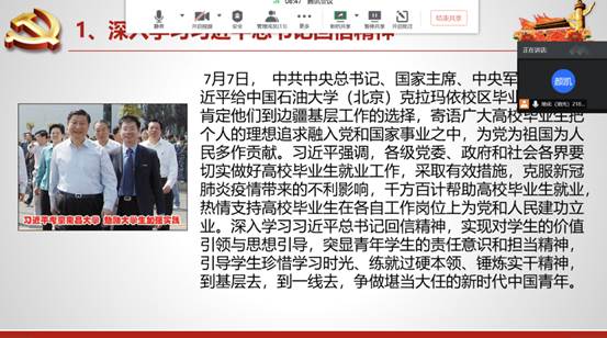 在本次主题班会活动开展过程中,许多支部采取了新颖的活动方式。如水文21902班的同学组织了一场线上演讲,攥写“点赞抗疫人物”解说稿等特色活动;环境21902班同学采取了宣誓与以歌表志的方式来开展特色班会;而水文21802班的同学们则是在线上研读了习近平总书记的回信并观看了《新闻联播》的录播视频,在此次学习中,他们意识到作为一名青年团员,应当持之以恒的用马克思主义和中国特色社会主义理论体系武装自己,将个人价值实现和集体利益结合在一起,为共产主义的实现贡献自己的一份力量。