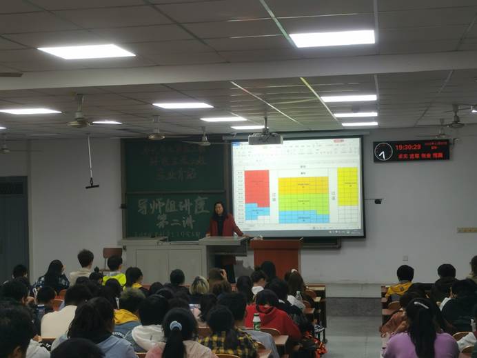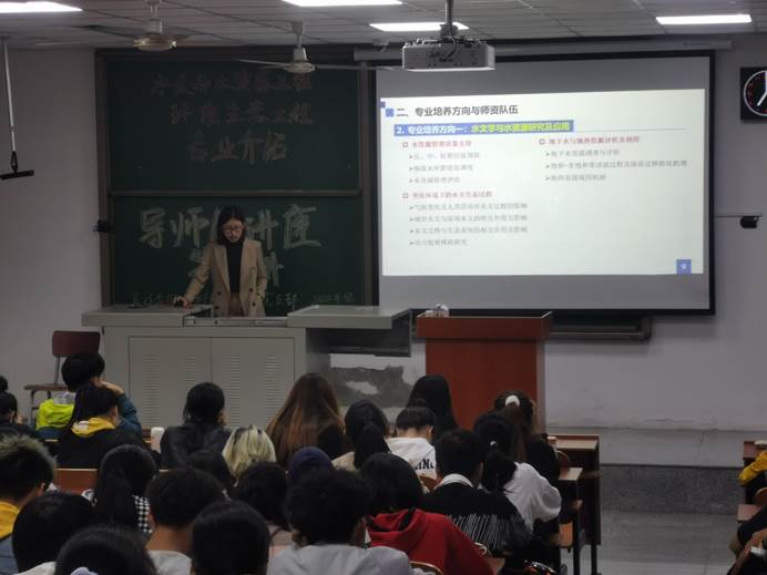 接着,贺老师讲到了本校在人才培养方面所能提供的条件。首先,在人才培养条件上,学校将为员工提供实践基地、校级科研平台和省部级科研平台,来保障员工的科研实践条件和实践能力的培养。其次,学校也有很多强有力的老师可以为员工们提供知识、科研等方面的辅导。在最后贺老师提到,学历决定起点,在未来的就业方向上,有行政事业单位、水利电力设计院、地矿部门、勘察施工单位和环评公司等,只有不断提高自身的学历,才能拥有足够的能力,成为进入这些公司的“敲门砖”。她希望同学们能对两个专业有更好的了解,从而选择到自身真正感兴趣的行业,从而为自己未来的发展打下一个坚实的基础。