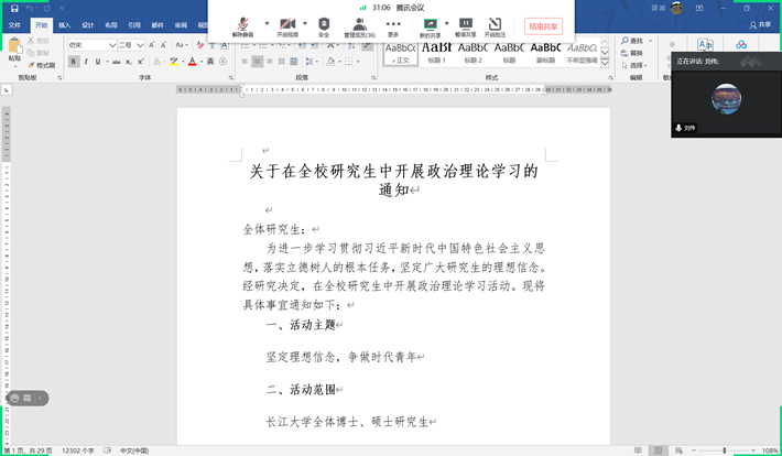 除学习党的会议精神外,各班再次强调了学校常态化疫情防控期间研究生管理暂行规定以及请假相关手续的办理,这既是校规校纪,更是为了保护这来之不易的抗疫成果,作为新时代的青年,更要严格遵守,为疫情防控贡献力量。