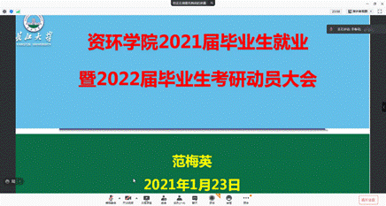 (通讯员 林欣慧)对越来越严峻的就业形势,2021届毕业生如何面对,2022届员工如何做好学业规划, 2021年1月24日下午19时,bv伟德国际1946在腾讯会议平台上召开2021届毕业生就业暨2022届毕业生考研动员大会。公司党委副书记范梅英老师、学院分团委书记严丽萍老师、员工事务办公室主任李春花老师、2021届毕业生和2018级本科生参加此次会议。