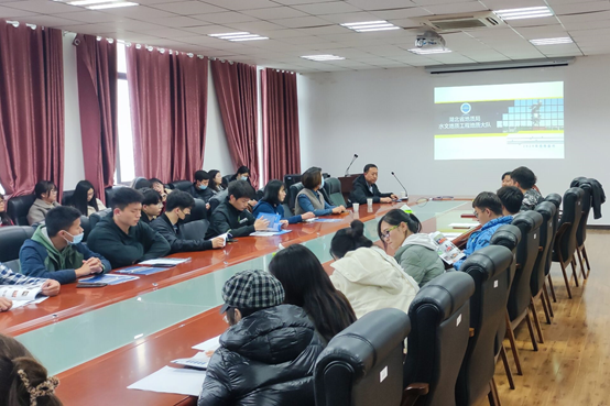 会议由学工团委书记严丽萍老师主持,在短暂的介绍了领导及嘉宾后宣讲会直接进入主题,会议由湖北省水文地质工程勘察院经理对勘察院的招聘需求及发展现状进行了详细的讲解,人事部经理对勘察院的技术人员情况进行了介绍,讲解完毕后由现场同学们进行咨询和提问,不少同学对该单位表示了浓厚的兴趣,大家纷纷举手提问,勘察院经理对同学们的提问进行了耐心回答,对于投递简历和签订三方协议的过程,人事部经理也进行了说明,表示大家都可以现场投递简历,随后不少同学也积极提交了自己的简历。