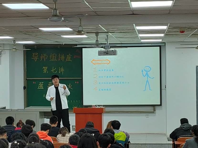 讲座进行时,同学们认真听取建议,时不时低头做笔记。一场讲座,让同学们受益匪浅。讲座结束,同学们整理好笔记有序退场,为此次讲座留下了一个完美的句号。相信同学们对自己的老员工活都有了更高的期待,也会在以后的日子中规划好自己的未来,让自己的大学四年过得更加精彩。