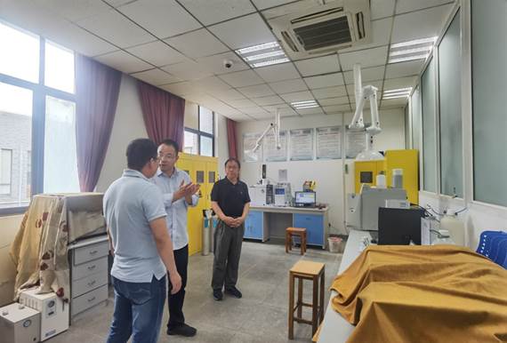 李经理一行还参观调研了公司团队建设及实验室工作,在文经理的陪同下,由肖老师向李经理介绍了学院团队建设取得的科研成果及重点实验室的发展情况。