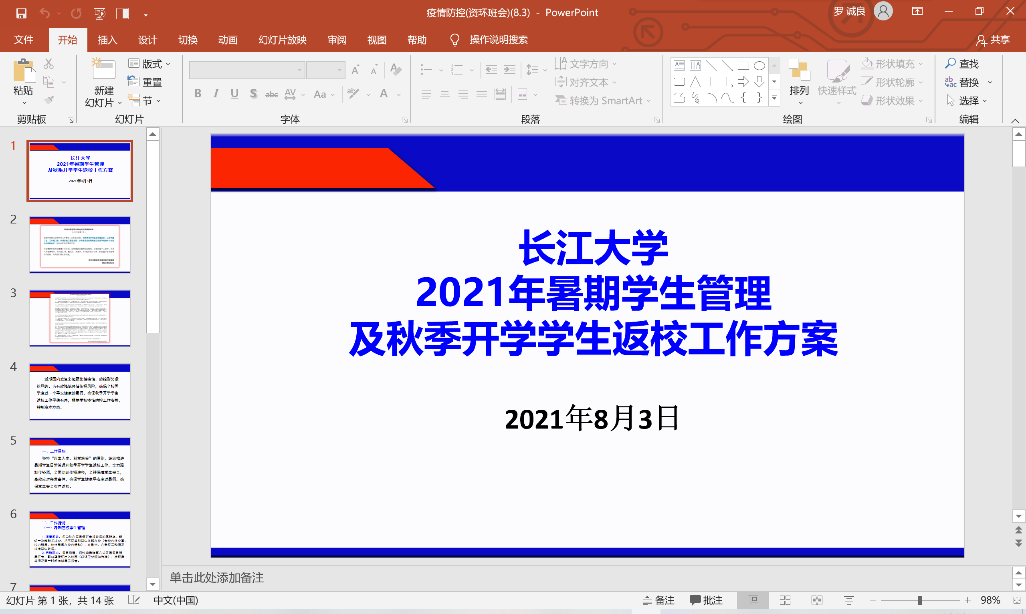 班会下篇围绕同学们关心的返校问题展开说明,学校强调并坚持“以生为本、科学施策”的原则,统筹推进暑期员工日常管理和秋季开学员工返校工作,全力遏制传染源,全面切断传播途径,全程保障员工安全,高效应对突发事件,确保员工健康平安度过暑假,确保员工安全有序返校。从即日起开启为期21天的连续健康打卡及先申请后返校、非通知不返校、异常情况暂缓返校等一系列返校预备工作,号召同学们积极配合学院管理。