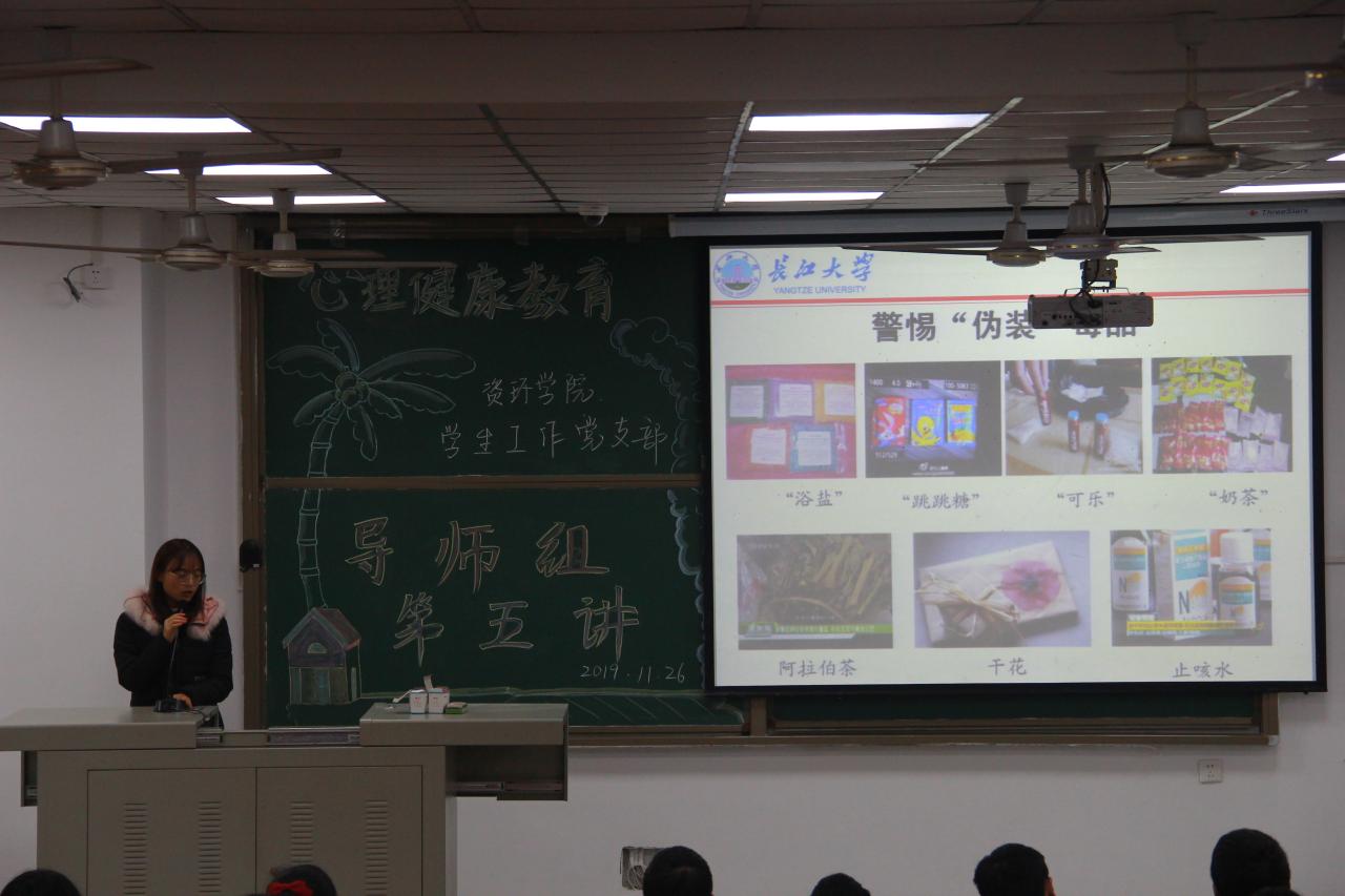 (通讯员 蒋超 图/文)为了加强员工生命安全及自我保护意识,bv伟德国际1946bv伟德国际1946于2019年11月下旬很荣幸邀请到了老员工心理健康中心的商麟鑫老师,地球科学学院罗小玉老师,石油工程学院刘少文老师,以及校团委荆鑫老师还有我们院辅导员李春花老师给19级新生开展了包括心理健康,网络安全,防火防电防艾防溺水和远离毒品等多个方面共五场安全专题讲座。