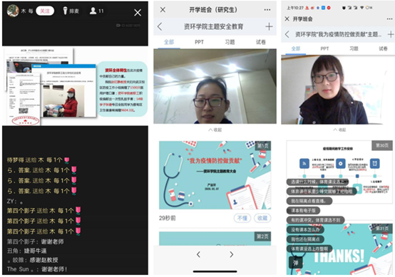 (通讯员 李婉婷 图/文)近日,新型冠状病毒感染的肺炎疫情引起了全国上下的高度重视,为了让资环学子进一步了解新型冠状病毒的相关知识并做好相应疫情的防护工作。近期公司于“雨课堂”、“QQ群”等方式召开了“我为疫情防控做贡献”的线上主题班会。本次班会分别由公司党委副书记范梅英对本科大四,bv伟德国际1946团委书记严丽萍对研究生,辅导员李春花老师对本科大一至大三,主持开展。通过网络主题教育,将资环学子们紧紧相连,为打赢疫情防控阻击战贡献一份力量。