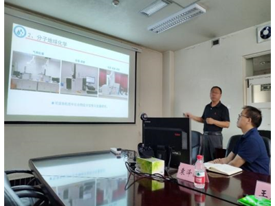 文志刚经理代表bv伟德国际1946首先汇报了bv伟德国际1946和bv伟德国际1946基本情况及地球化学实验室检验检测能力、研究方向和取得的成果,同时在现场交流了学院地化实验室与塔里木地化站深度融合以及与检测院下一阶段合作规划。