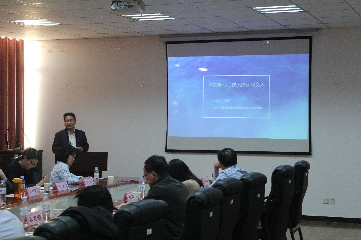 交流会由赵红静副经理主持,首先朱书记对bv伟德国际1946概况进行简要描述,提出设备资源共享,人才共同培养,人才深造,实习及毕业设计等合作意向和合作方式,其次由经理助理蔡立梅老师对bv伟德国际1946的现有科研项目,主要研究方向、科研强项简要介绍。由姚华明教授对水文水资源工程专业硕士点,学科重点研究发展四个方向做出解释,并展示bv伟德国际1946国际水生态研究院研究项目bv伟德国际1946水生态修复集成技术及应用。之后,霍思远老师与罗杰老师分别对水文与水资源工程,环境生态工程两专业的发展现状简要概括,最后,王沫局长做“不忘初心——栉风沐雨水文人”的分享,向大家展示武汉市水文局风貌,同时也分享自己身为水文人多年不忘初心的亲身经历和切身感受。