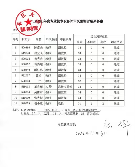 根据2022年学校职称评审工作安排,经学院审核,公司共有11名教职工符合职称申报条件,现将民主测评通过人员名单予以公示。