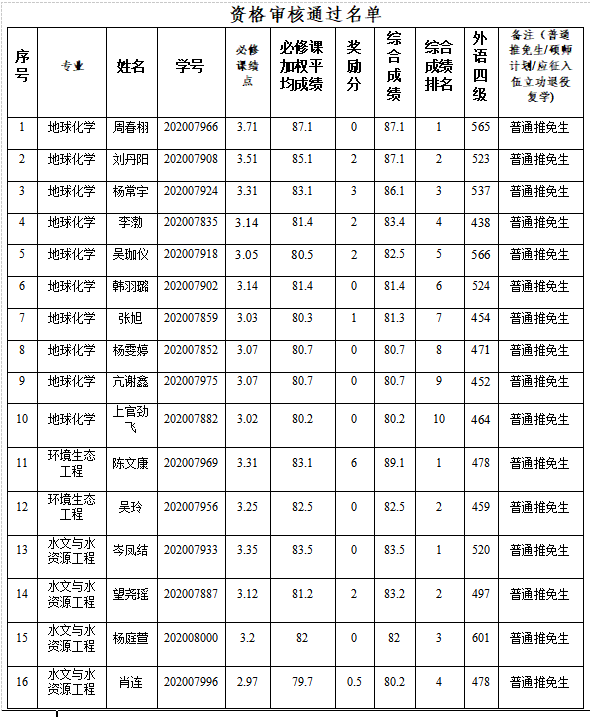 根据学校《关于做好推荐2024届优秀本科毕业生免试攻读硕士学位研究生工作的通知》和《资环公司2024届优秀本科毕业生免试攻读硕士学位研究生工作方案》要求,经员工本人申报,学院资格审核,学院推免生遴选工作小组审议,现将公司报名参加推免员工资格审核通过名单予以公示。公示时间:2023年9月 5日-7 日。