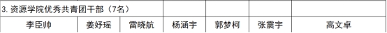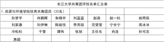 经本人申请,学院团委推荐,孙梦平等22名同学评为“优秀共青团员”,李臣帅等7名同学评为“优秀共青团干部”,宁宇宁评为“共青团员标兵”,地化油光22301班等班级评为“活力团支部”,现予以公示。
